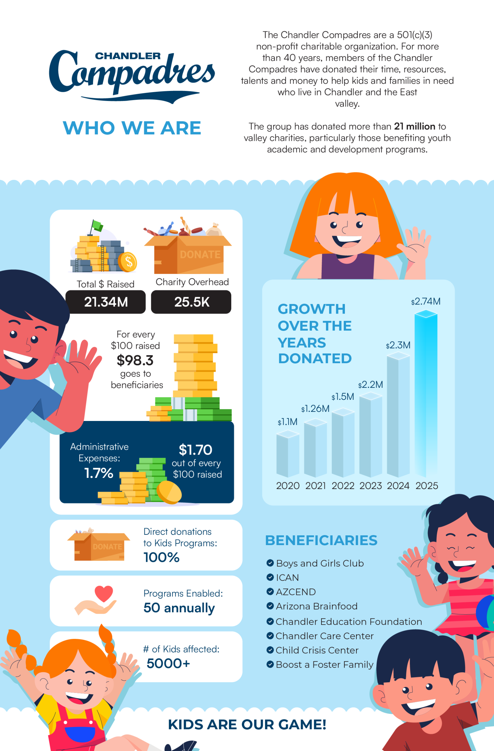 The Board and the membership volunteer their time and effort to raise money for underprivileged children throughout Chandler and the surrounding area.